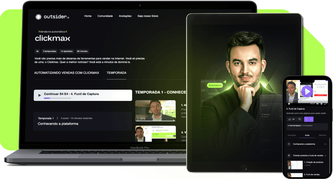 Essa é sua oportunidade de acessar o meu arsenal de vendas, com aulas e ferramentas diretamente na minha nova plataforma, a ClickMax.