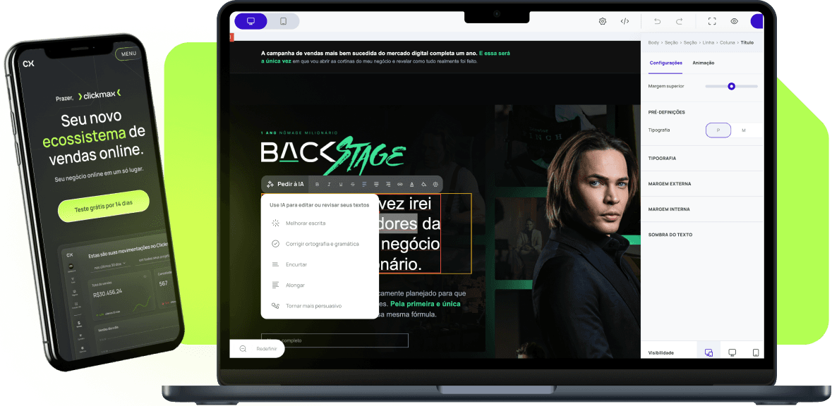 Você não precisa mais de dezenas de ferramentas para vender na Internet. Você só precisa de uma: O Clickmax.